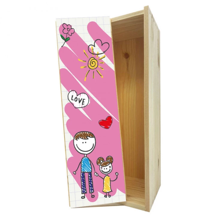 Wooden box 1 bottle 0,75 L - Sticker Drawing dad and girl