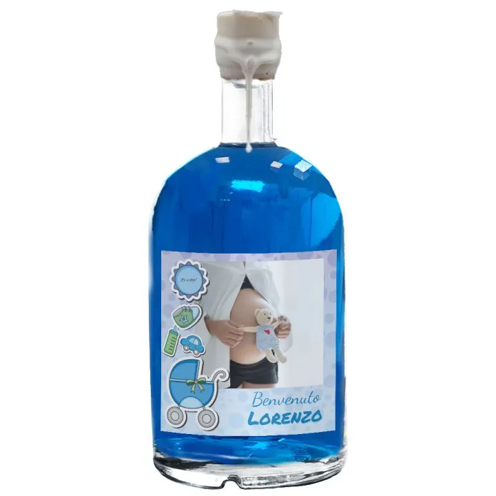 Blue Dry Gin - 0.50lt. - personalized gift idea for Birth or Baby Shower. It'a a Boy! Add your photo and a special dedication on the label for an original and exclusive personalized gift.