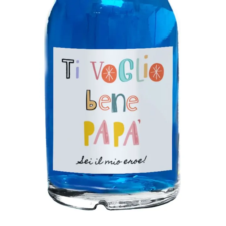 Blue Dry Gin 0,5 lt. - bottiglia di Blue Dry Gin personalizzata per la festa del papà. Originale idea regalo per il 19 marzo. Scrivi la tua dedica e stupisci il tuo papà.