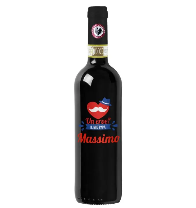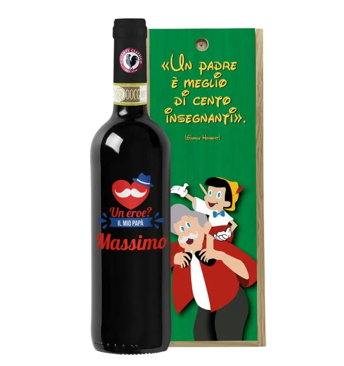 Father's Day is near, have you thought about how to surprise yours? Do you already have some ideas or are you running out of ideas this year? In the latter case, don't worry, Bottle-Up can come to your aid with a series of super interesting proposals! How about, for example, a personalised gift such as a bottle with a dedication? Something certainly original, thanks to which a good impression is assured! With such a gift, in fact, you will certainly leave your father open-mouthed on 19 March: the bottle with a dedication of Chianti Classico and its beautiful illustrated wooden box will astound him! You can make this Father's Day truly unforgettable and add that extra something to the bottle label that unequivocally refers to all the affection that unites father and son or daughter. With such a personalised gift this time, you'll be on the safe side, without doubts or second thoughts, and the quality of our wine will also contribute to the complete success of the gift. Intense, with a bouquet in which small red fruits in particular are exalted, it is a Chianti Classico of excellent vigour and structure, with great ageing potential and, therefore, also excellent in the years to come. Your father may thus decide to open it to celebrate this year's Father's Day or, on the contrary, keep it for the future and uncork it on some other happy occasion, perhaps to share as a family. Your personalised gift and the bottle with a dedication will then remind him forever how loving and warm your thought was.
