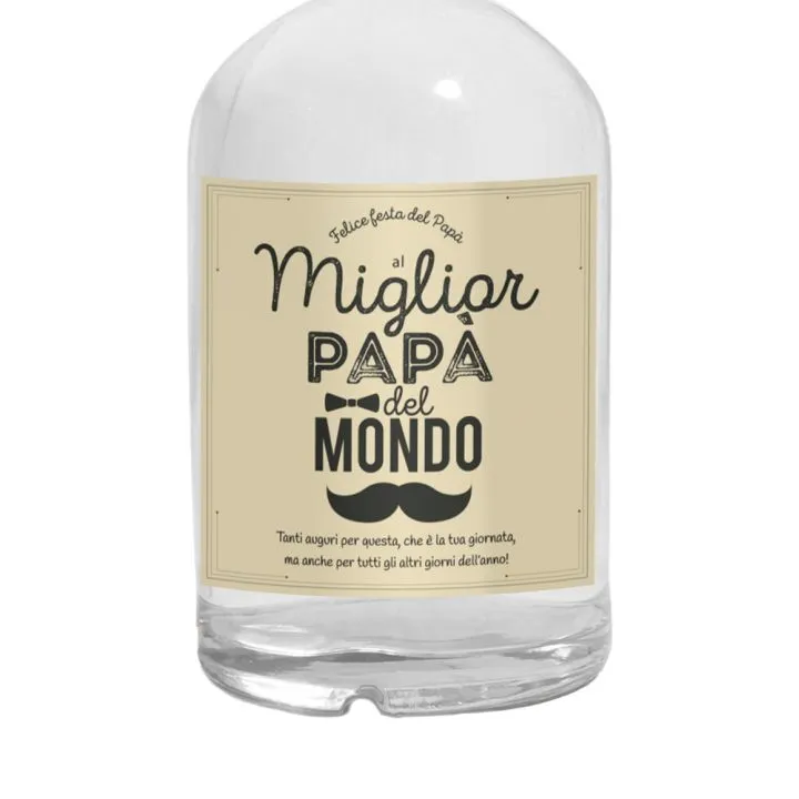 If Father's Day is just around the corner and you haven't yet found the right idea for yours, we suggest you leave him speechless with an inimitable gift bottle: our personalized Gin accompanied by a wooden box with a themed illustration! Specifically, it is a high quality distillate, ideal for a moment of relaxation and perfect for the preparation of tasty cocktails, from the most classic to the most experimental and whimsical. Thus, Father's Day will not only be an opportunity to show your father all the affection and esteem that binds you to him, but it could also turn into a mixology themed day! Is not it fantastic?! However, it doesn't end here! In fact, you can customize your gift bottle to your liking, by inserting, for example, a phrase written in your own hand - ironic or affectionate -, as well as a beautiful dedication for your dad: have fun, unleash your creativity and free your fantasy! Let your personalized Gin give this year's Father's Day something extra! For once, give up clichès and "already seen": trust Bottle-Up and order, without any delay, our personalized Gin with decorated packaging! We are ready to bet: with this gift bottle you will succeed in the arduous task of leaving your dad speechless! You will then share a few sips of Gin or toast, in all serenity, with a very pleasant Gin Tonic, perhaps prepared together, thus giving life to precious moments, which you will remember even in many years.