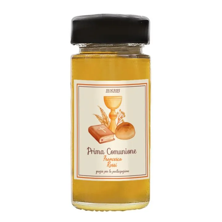 The first Holy Communion deserves to be celebrated in the best possible way; the favours, therefore, must also be up to scratch. If after travelling far and wide you still haven't found something really special and are still looking for an original idea, you've come to the right place, Bottle-Up is for you! Here, in fact, the ideas are not lacking as well as the options and, certainly, you do not risk the already seen or falling into the usual clichés. Our wildflower honey jars, for example, are a real hit for first communions; they combine the sweetness of Tuscan honey with the originality of personalised jars. By creating ad hoc labels with the date of the celebration and a short thank-you note for the guests, you will leave everyone speechless! Go on the safe side, then, rely on Bottle-Up and choose our mixed-flower honey favours for your first communion: all you have to do is customise the jars and then proceed with the order; in a few days you will receive the favours directly to your home... nothing could be easier! Your guests will greatly appreciate your gift and every time they enjoy the goodness of your honey in a moment of relaxation, they will remember with pleasure the joy you shared: what could be nicer? So don't wait any longer: thanks to Bottle-Up the favours you are looking for are just a click away! You can't let an opportunity like this pass you by! If you want to impress your guests and, at the same time, want to make your first communion even more special, this is the right choice. Trust us: you won't regret it!