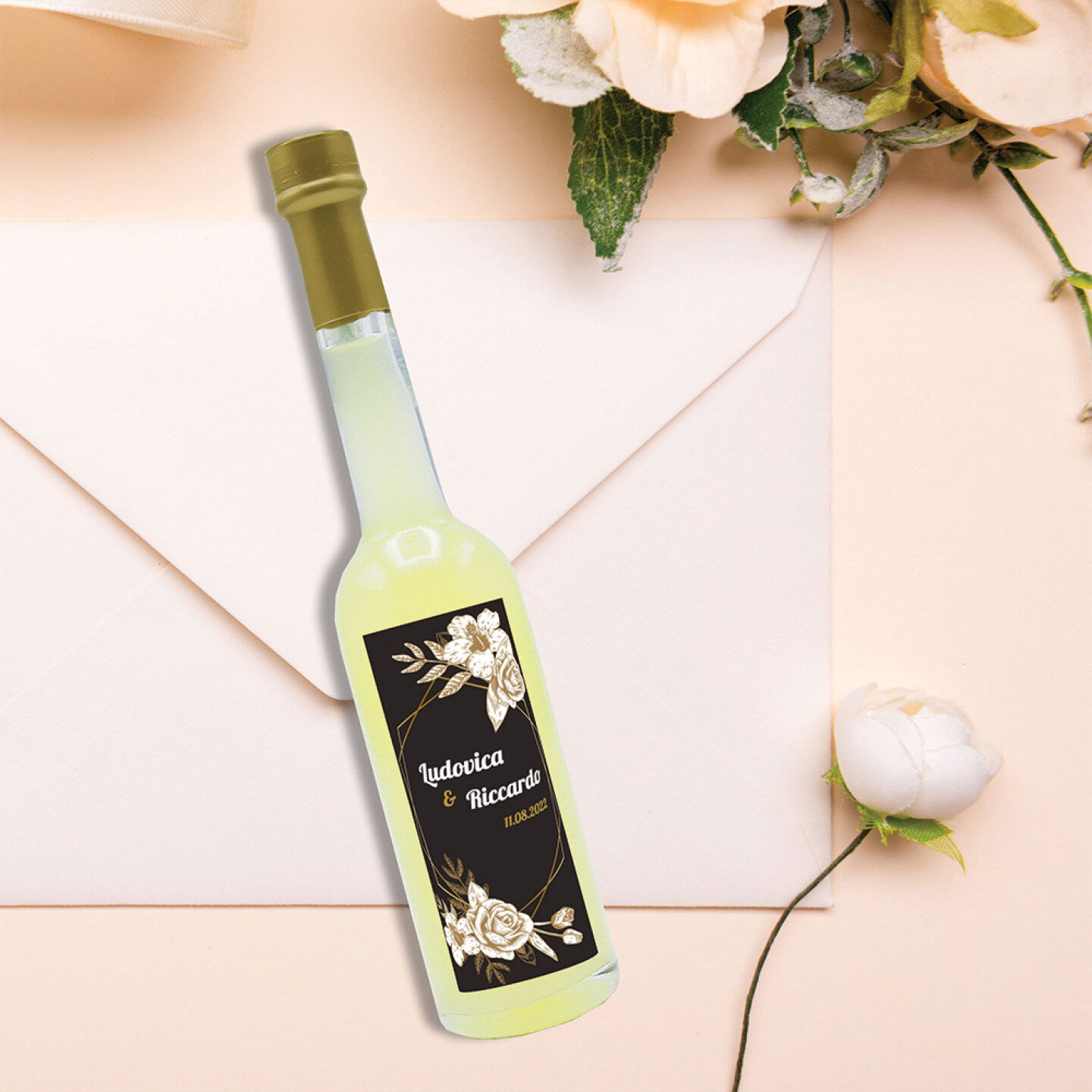 Lemon Liqueur – wedding favors 72 bottles mignon 0.10 lt. – Mini bottles liqueur craft with custom label as an idea for wedding favors and ceremonies
