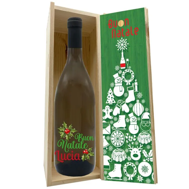 Gewürztraminer Venezia Giulia IGT - 0.75 lt- bottle with personalised label and wooden box for an original Christmas gift idea. Personalise your dedication on the label and send your Christmas greetings to whomever you wish.