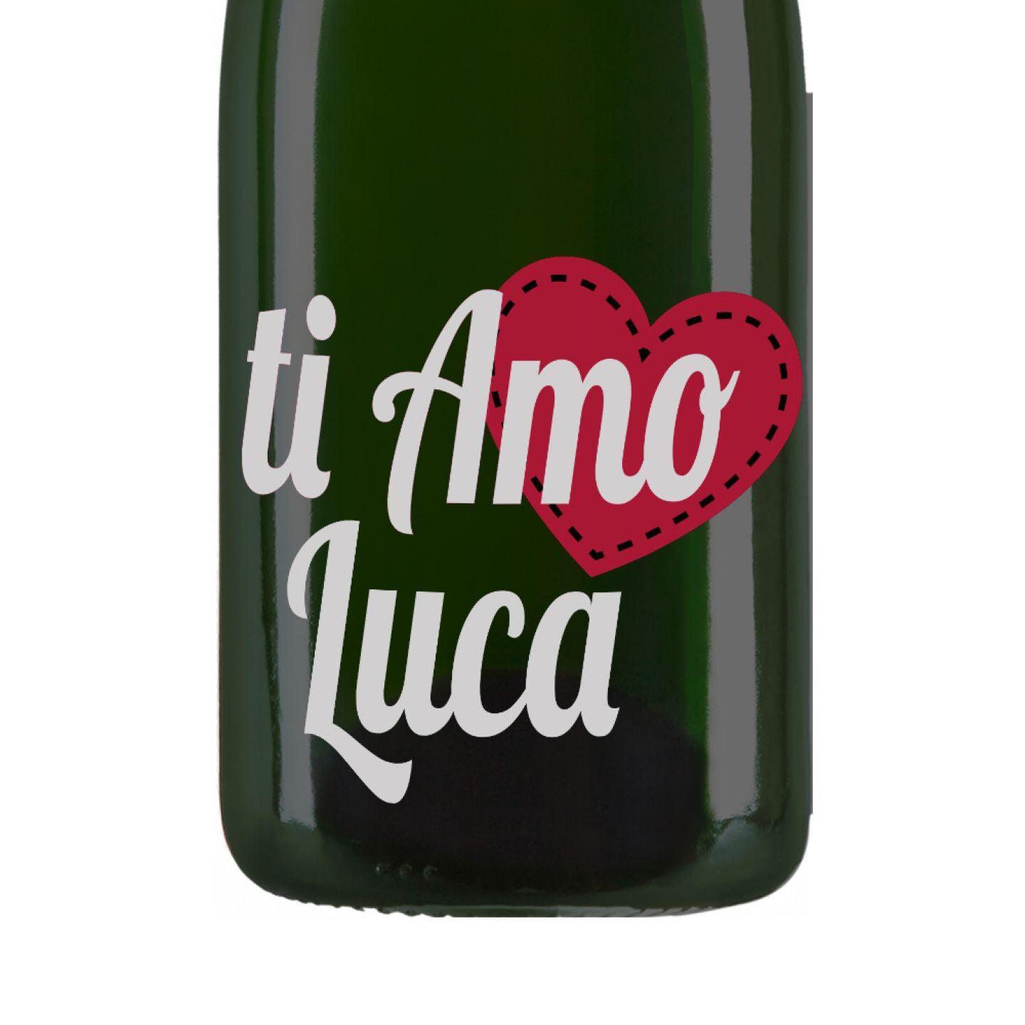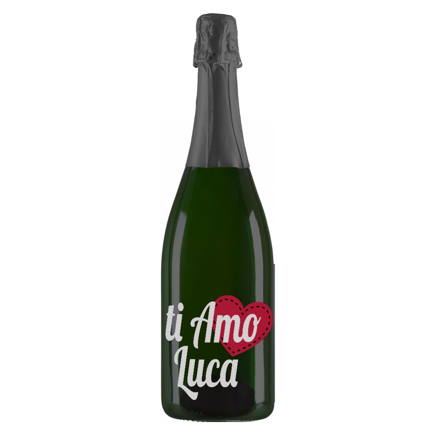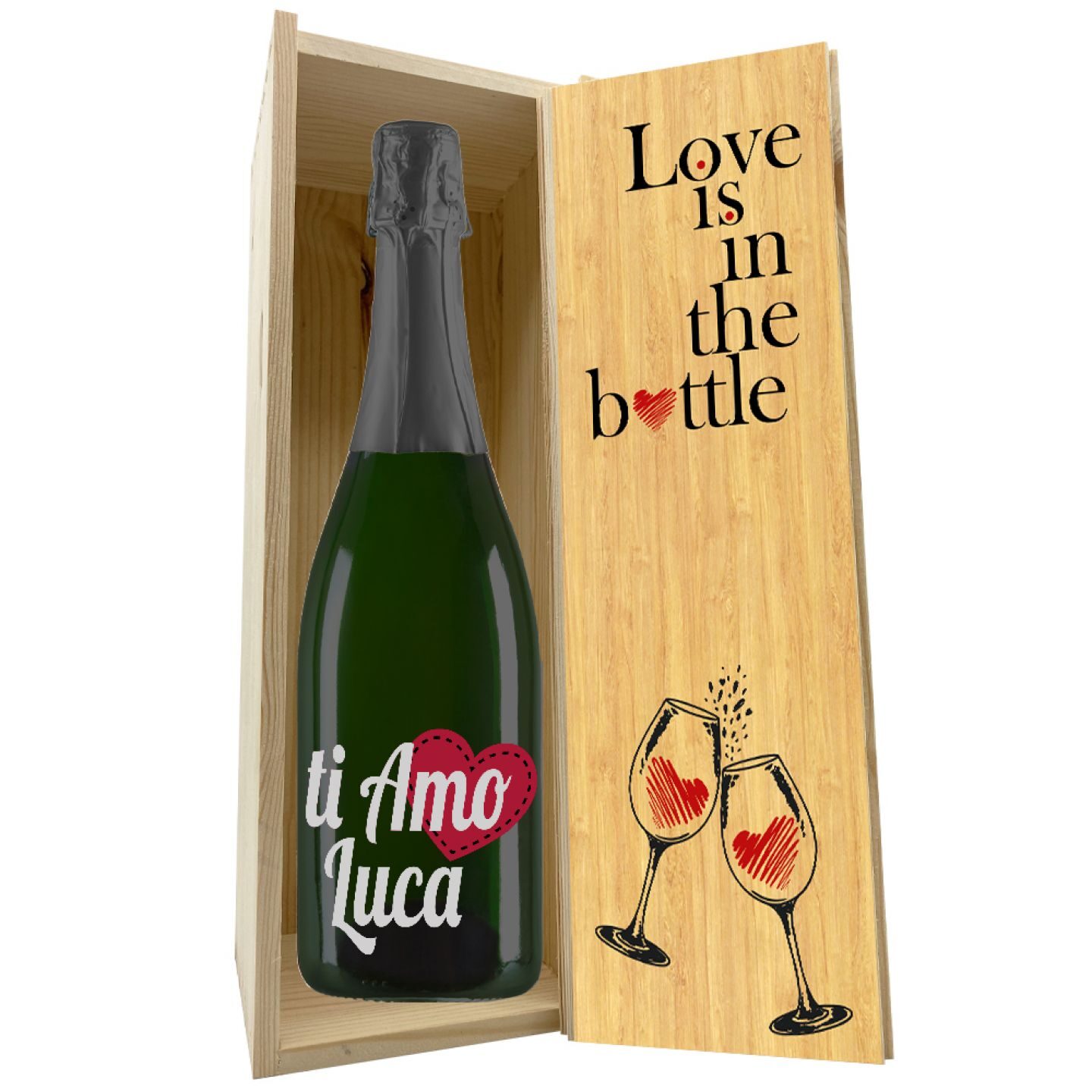 Prosecco Extra Dry DOC MAGNUM – 1.5 lt. – Original gift idea for Valentine’s Day. Personalized bottle with name and dedication, and wooden box with Love is in the Bottle sticker.