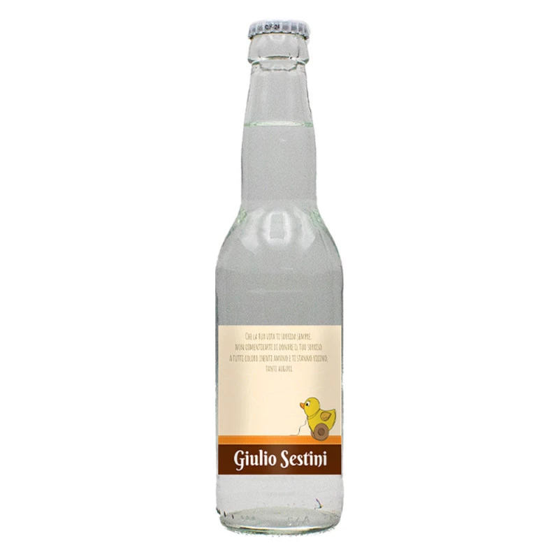 If, as far as favors are concerned, you are still looking for the right idea for your son or daughter's baptism, don't worry, Bottle-Up will help you! In fact, you can focus on our mignon bottles; 0.33 liter bottles, specifically of tonic water, with customizable labels. In fact, you can add the name of the boy or girl and, perhaps, a few words of thanks for the guests: trust me, no detail will go unnoticed! Furthermore, with our mignon bottles you won't risk that even your wedding favors, as often happens, end up on the back burner, at the bottom of a drawer or in some old showcase; on the contrary, your idea for this christening cadeau will be greatly appreciated! Thus, you will be able to say goodbye to clichés and "already seen" and, certainly, stand out. So don't wait any longer: rely on Bottle-Up and choose our mignon bottles... after all, they're also just a click away! All you need to do is personalize the labels and then proceed with the order; you will receive the favors directly to your home, in less than no time: more comfortable than that! It will be nice, then, for your guests to keep the mignon, once empty, even for years to come; it will remind them not only of your son or daughter's baptism, but will also remind them of the kindness of your gesture. So if your aim is to surprise everyone and add something extra to such a significant event, this is the perfect idea for your boy or girl's baptism: you certainly won't regret it!