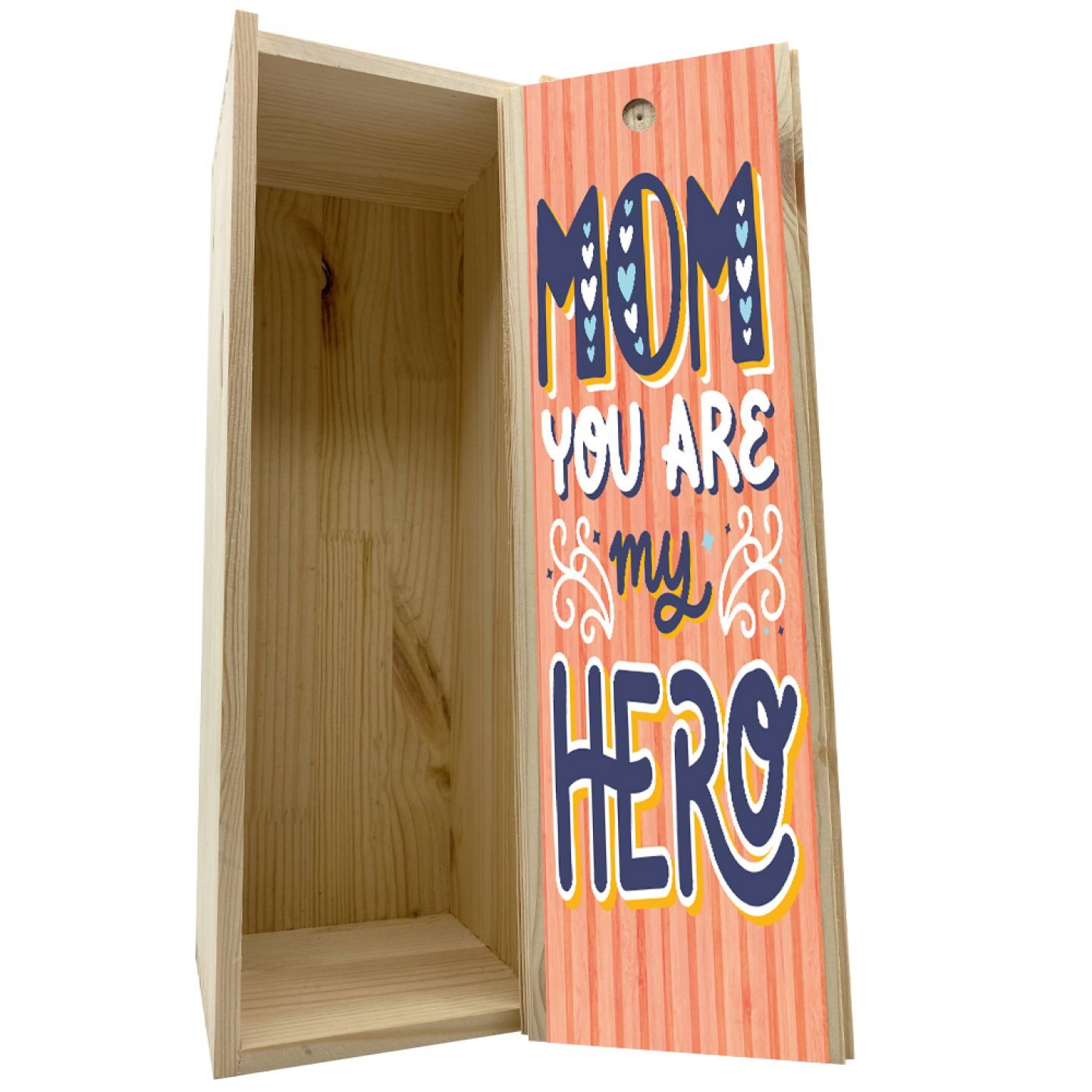 Have you decided to surprise yours truly this Mother's Day with a great bottle of wine? Are you, therefore, looking for a gift box that is up to the job? If, in both cases, the answer is yes, you've come to the right place: Bottle-Up offers you, in fact, a beautiful personalised bottle crate with a Mother's Day themed sticker. It is, specifically, a wooden box for standard wine bottles, colourful and finely detailed, which is sure to win your mum's heart. If, therefore, you don't want to fall into the same old trap for your gift wrapping, you can't miss our wooden box: it will add an extra something to your wine bottle. It will also be nice for your mother to keep the bottle box intact for years to come: it will remind her forever of the affection of your gesture. So don't wait any longer: the gift box you are looking for is just a click away! Once you have placed your order, you will receive the box directly to your home within a few days... it's as easy as that! You will make this Mother's Day even more special; your mum will undoubtedly appreciate the wine, but she will inevitably fall in love with the bottle crate. After all, you don't see a box like this every day: it's impossible to leave her indifferent! Make your choice, then, and you won't regret it: for once it will be your mum who will stand open-mouthed and exclaim "Wow!"... there's nothing more beautiful!
