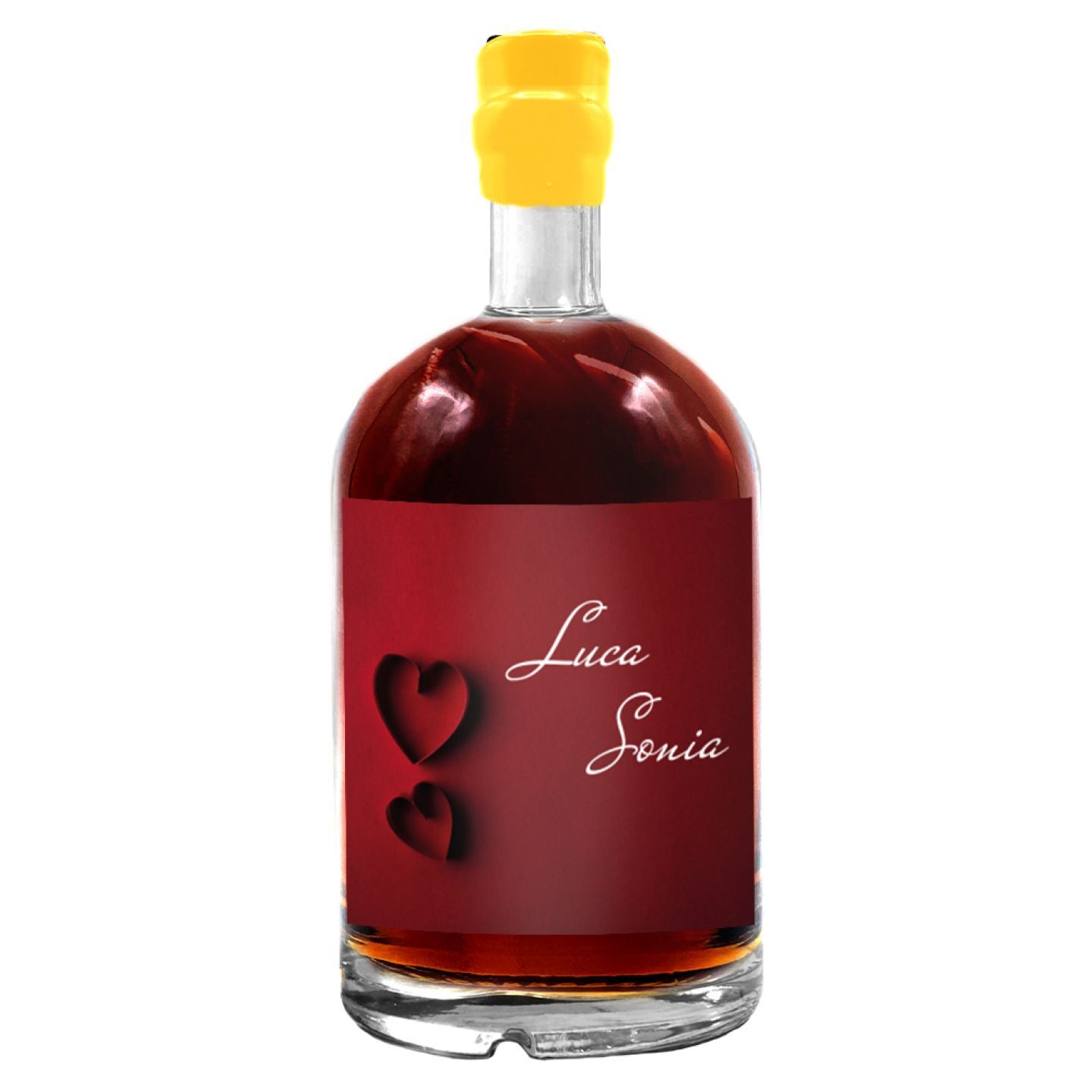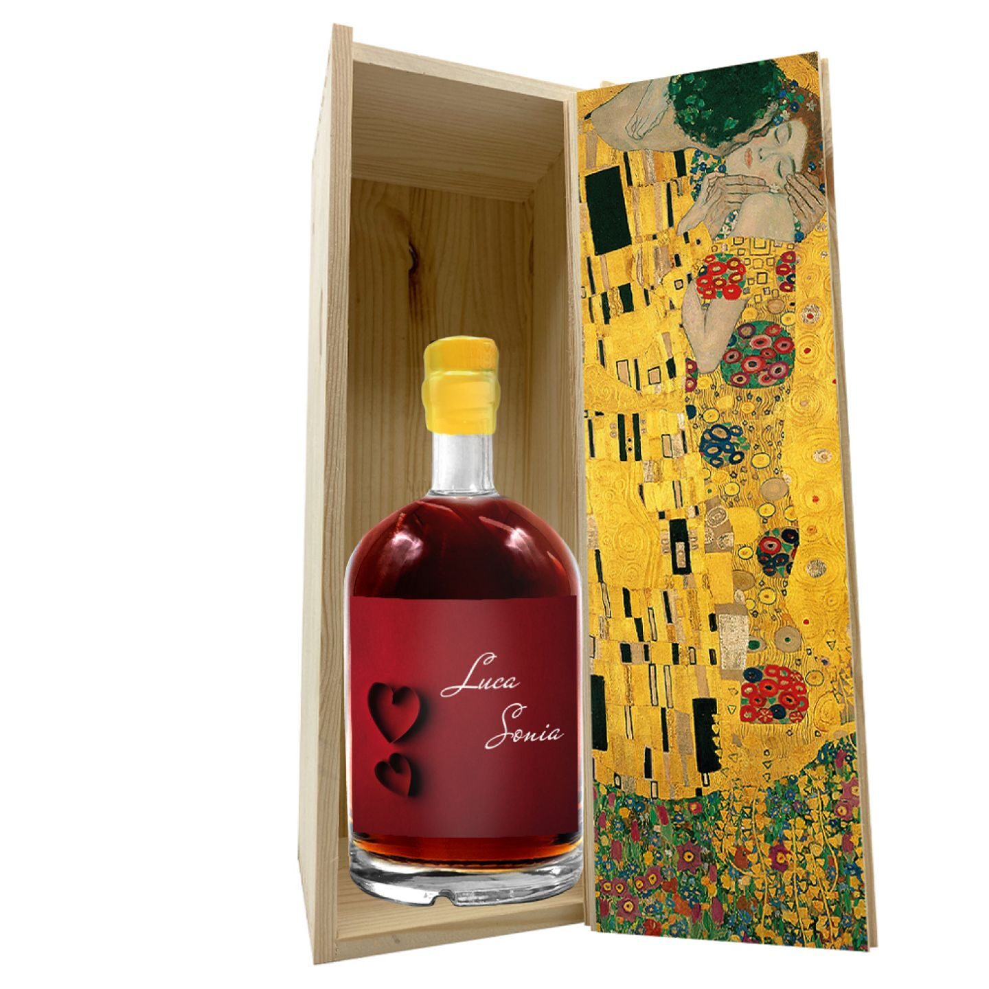 Amaro 0.5 lt. – bottiglia di liquore alle erbe personalizzato con cassetta in legno per San Valentino. Originale idea regalo per la tua dolce metà. Stupisci il destinatario con una dedica personalizzata!