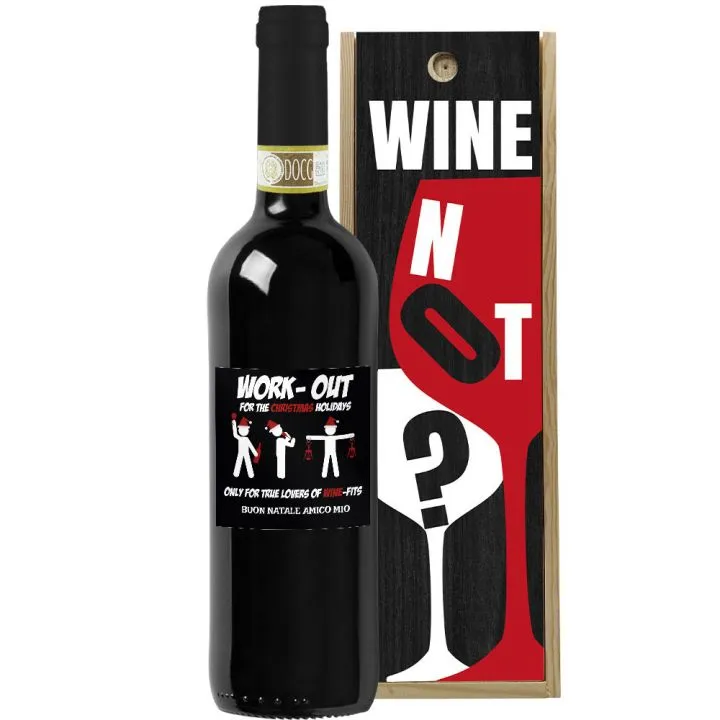 Vino Nobile di Montepulciano DOCG - 0.75 lt. con cassetta in legno a tema. Originale idea regalo per Natale. Bottiglia con etichetta personalizzata. Aggiungi la tua dedica e spedisci il regalo di Natale a chi desideri.