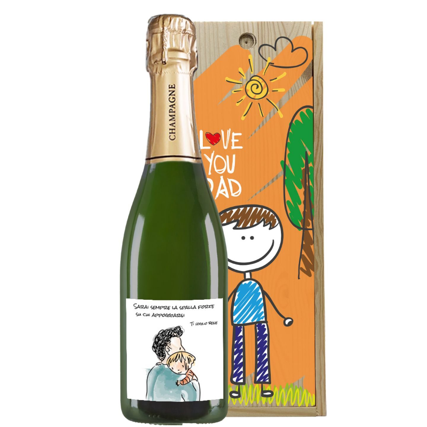 Champagne personalizzato con cassetta in legno per la Festa del Papà