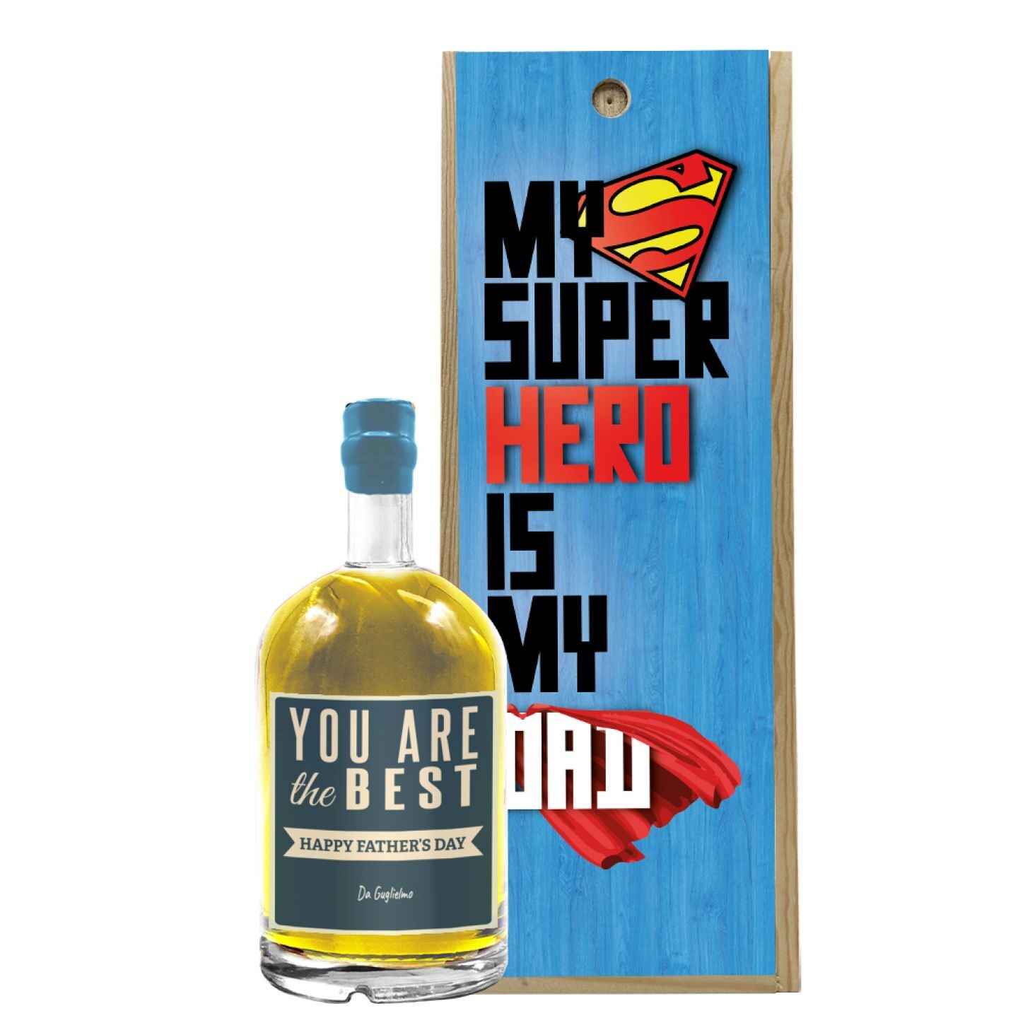 Limoncello 0.5 lt. – bottiglia di liquore personalizzato con cassetta in legno per la festa del papà. Originale idea regalo per il 19 marzo. Stupisci tuo papà con una dedica personalizzata!