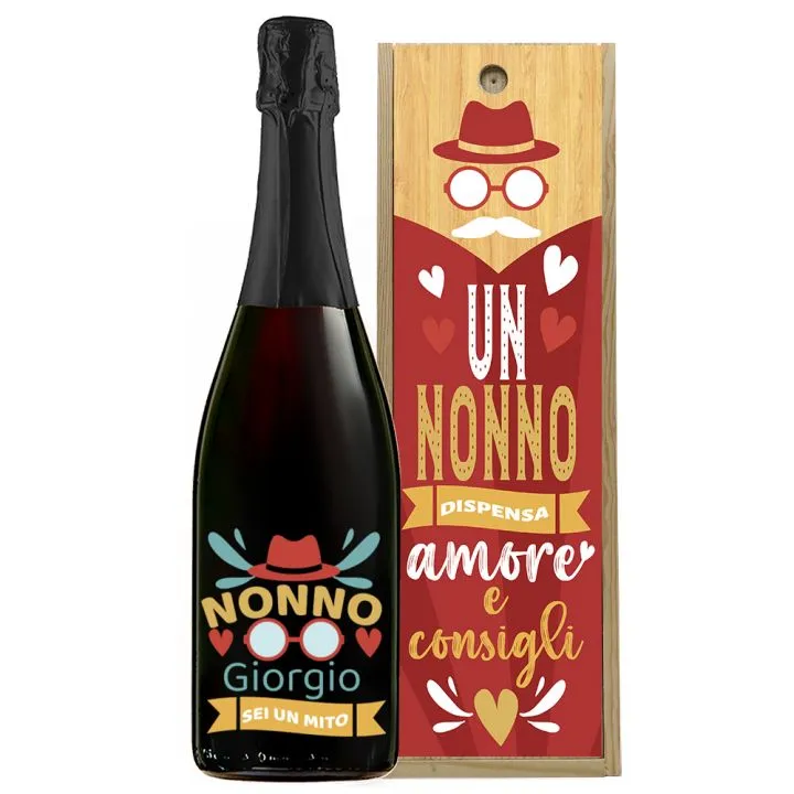 Prosecco Extra Dry - 0,75 lt. con cassetta in legno - Originale idea regalo con dedica personalizzata per festa dei nonni. Aggiungi il tuo messaggio in etichetta e stupisci il tuo amato nonno.