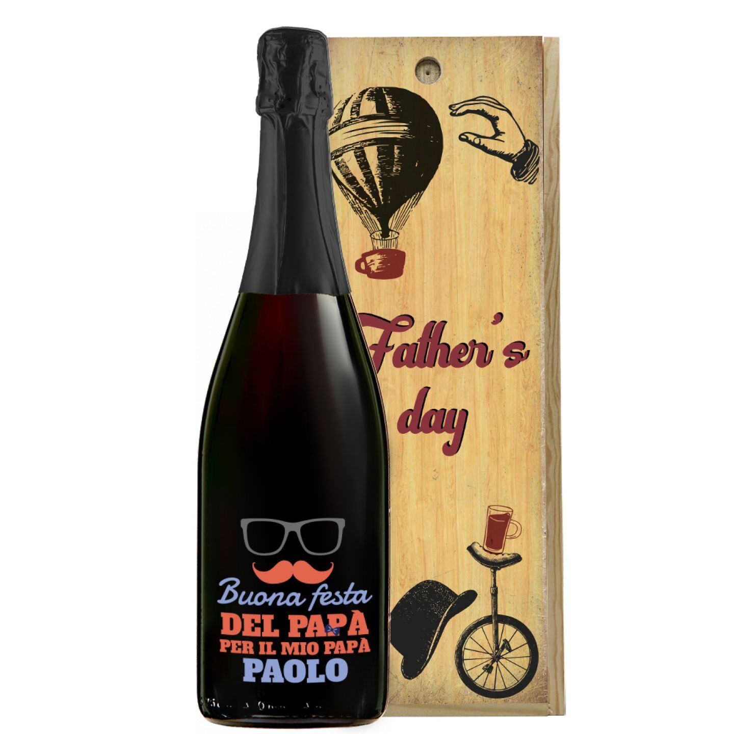 Se, quest'anno, per la festa del papà è da tempo che pensi a un regalo davvero originale ma, al momento, non l'hai ancora trovato... don't worry: ti veniamo in aiuto noi! Per esempio, potrebbe fare al caso tuo il nostro Prosecco personalizzato corredato di cassetta in legno con illustrazioni a tema; vivace ed esuberante, il nostro Prosecco aggiungerà il giusto brio a una festa come questa... non credi?! Potrai, poi, personalizzare l'etichetta della bottiglia a tuo piacimento, inserendo, ad esempio, una dedica scritta di tuo pugno; qualche parola che possa strappare una risata o - perché no! - possa far scendere qualche lacrima di commozione al tuo papà... non è bellissimo!? Fidati: non farti sfuggire un'idea regalo originale come questa... te ne pentiresti! Acquistare su Bottle-Up, poi, è semplice e veloce; ti basterà dare libero sfogo al tuo estro, creare un'etichetta su misura e, in seguito, inoltrare l'ordine. In men che non si dica riceverai il tuo Prosecco personalizzato direttamente a casa, in tutta comodità e perfettamente in tempo per la festa del papà. Potrai, poi, condividere, sul momento, un calice di bollicine con il tuo papà o, in alternativa, lui potrà decidere di conservare la bottiglia per qualche altra occasione; in ogni caso, una cosa è certa: il tuo Prosecco personalizzato sarà graditissimo! Non rimandare oltre l'acquisto, quindi: punta su questo regalo originale per la festa del papà... farai centro! Trust us: non troverai altrove qualcosa di analogo; non lasciarti scappare questa occasione! Per una volta, lascia senza parole il tuo papà!