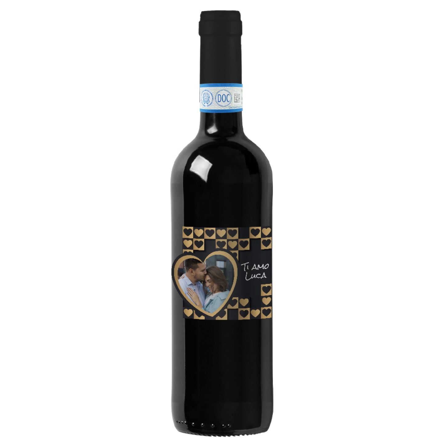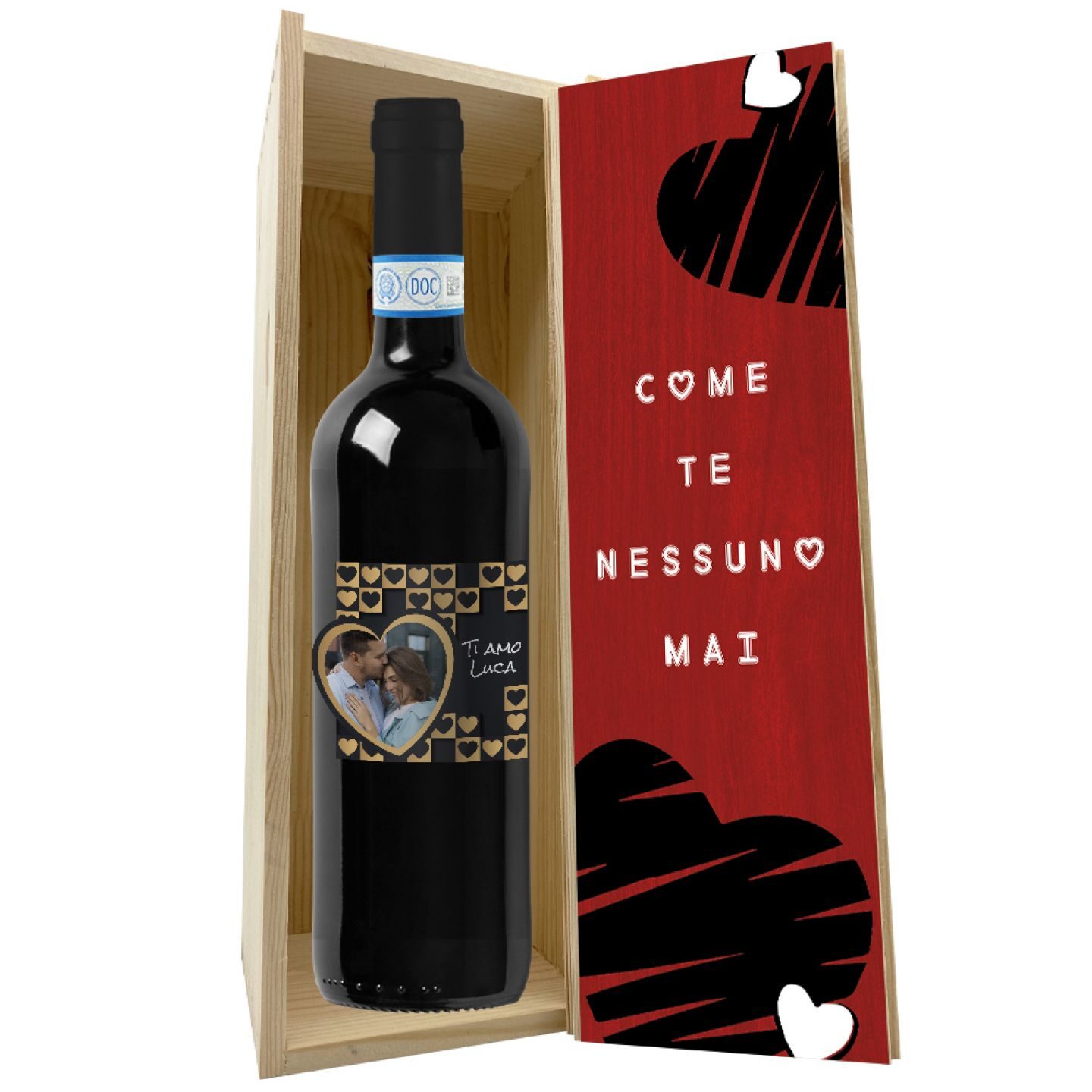 Rosso di Montepulciano DOC – 0.75 lt. – Bottiglia personalizzata per San Valentino, con cassetta in legno. Originale idea regalo. Etichetta personalizzata con foto e dedica. Stupisci la tua dolce metà con un regalo personalizzato.